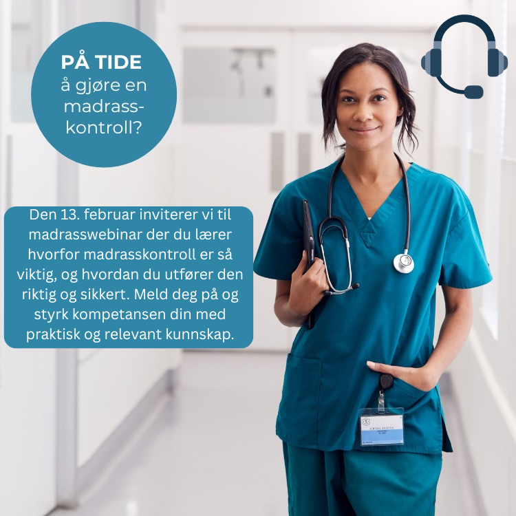 Velkommen til en kostnadsfri, digital gjennomgang av viktigheten av jevnlige madrasskontroller. I webinaret får du innsikt i hvorfor madrasskontroll er avgjørende for kvalitet, hygiene og sikkerhet, hva som er forventet levetid på madrasser i institusjoner og sykehjem, samt hvordan du kan gjennomføre en god og sikker madrasskontroll i praksis. Webinaret gir nyttig og relevant kunnskap for alle som jobber med eller har ansvar for madrasser i helse- og omsorgstjenesten.